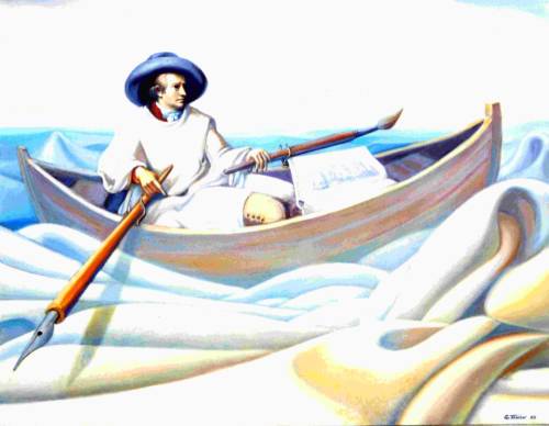 Goethe im Boot, Paraphrase nach Tischbein, 110x150 cm,